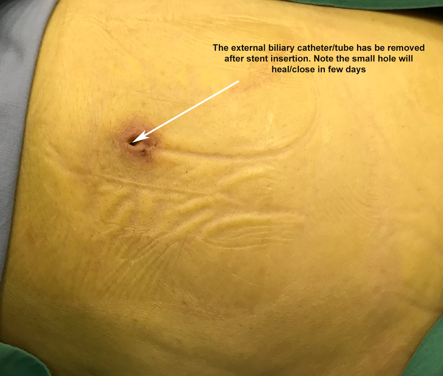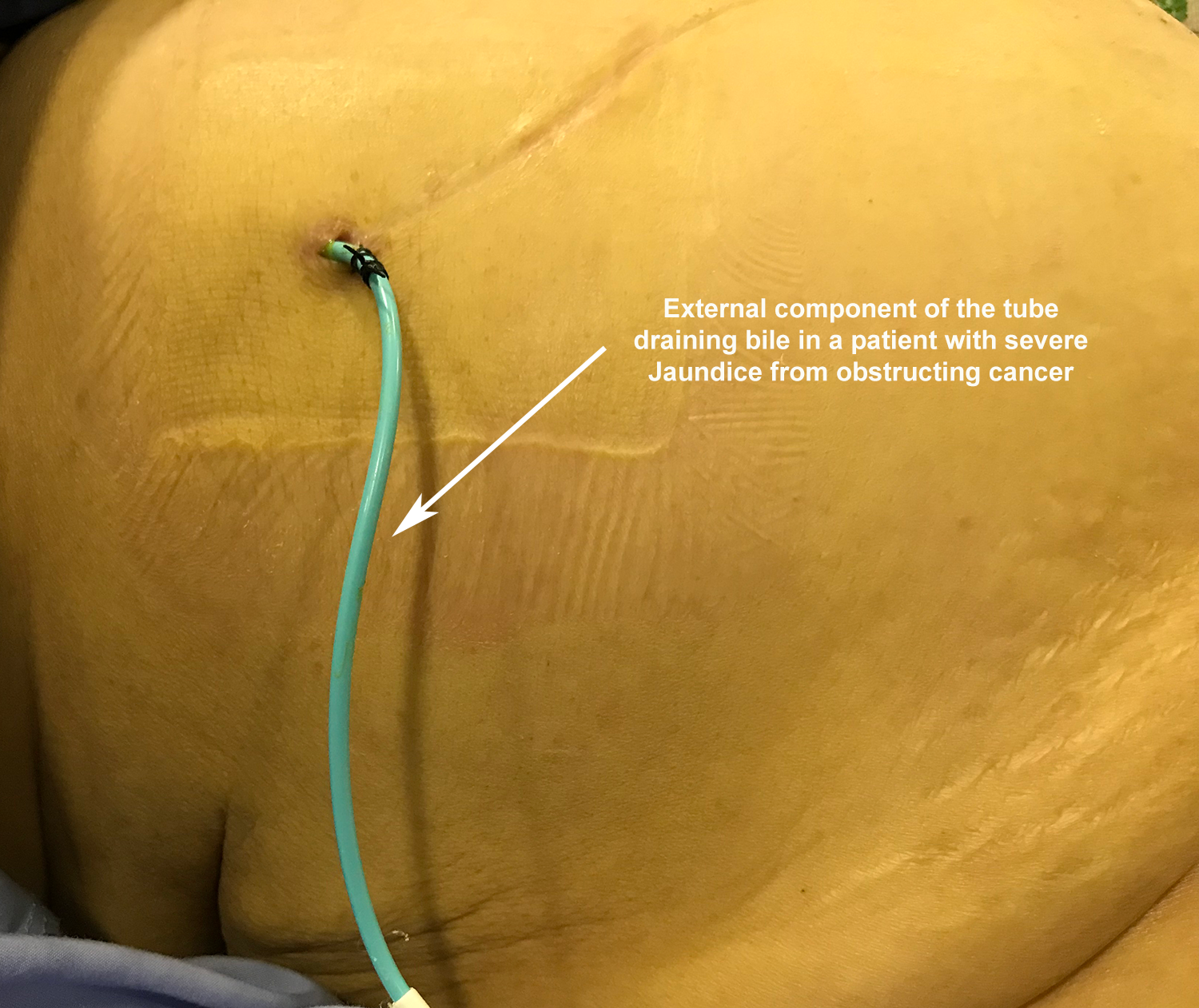 If you or family members have advanced cancer of the liver, which is causing worsening jaundice, this may be treatable with stenting the bile tube/duct which can reduce the yellowish skin discoloration and intractable itching. This may significantly improve the quality of life. Please ask your doctor for relevant information.