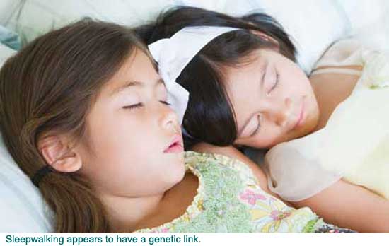 Sleepwalking occurs more frequently in identical twins. The risk is ten times higher if a first-degree relative has a history of sleepwalking.